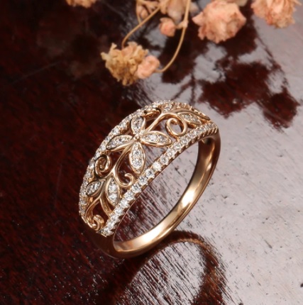 Anillos de boda de color oro de aleación de zinc , vintage para mujer. Joya creativa con flor , ideal para citas/fiesta/graduación/regalo/Día de San Valentín.