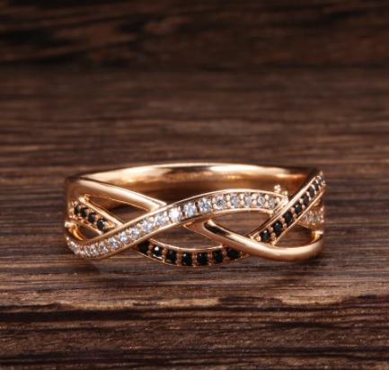 Anillo Boho (bandas cruzadas entre si) para mujer de oro rosa 585 y plata de primera ley, con circón negro y natural con flores huecas.joyería fina , vintage. Piedra principal: circón Natural negro Otra piedra: circon Natural Material: oro rosa 585 y plata 925 Ocasiones: citas/fiesta/graduación/regalo/Día de San Valentín.