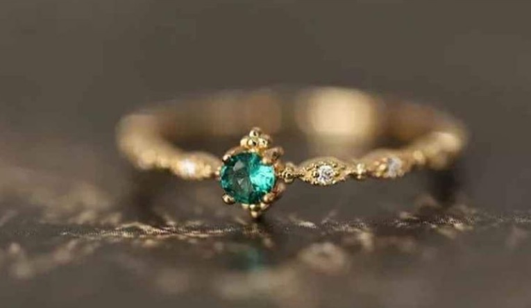 Anillo de plata de primera ley, bañado en oro amarillo con circonia de color verde esmeralda para mujer.sortija ajustable.Tamaño adaptable para tallas 6,7,8