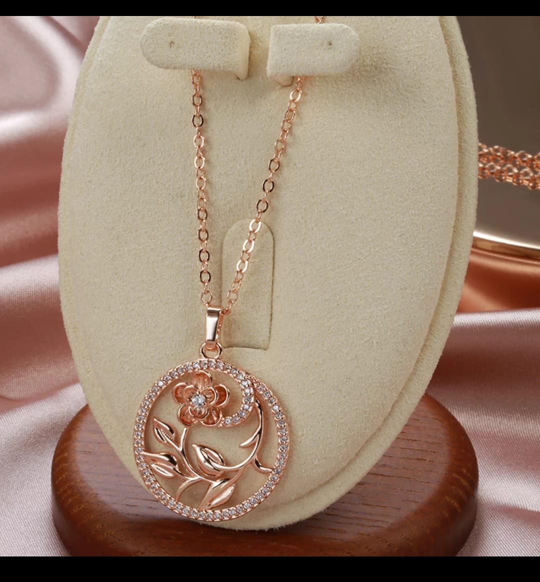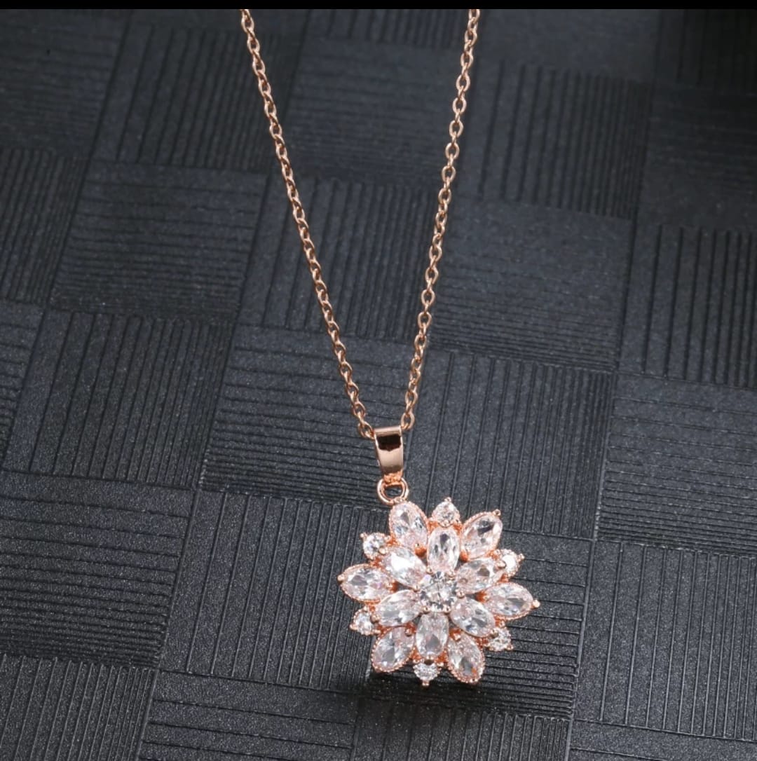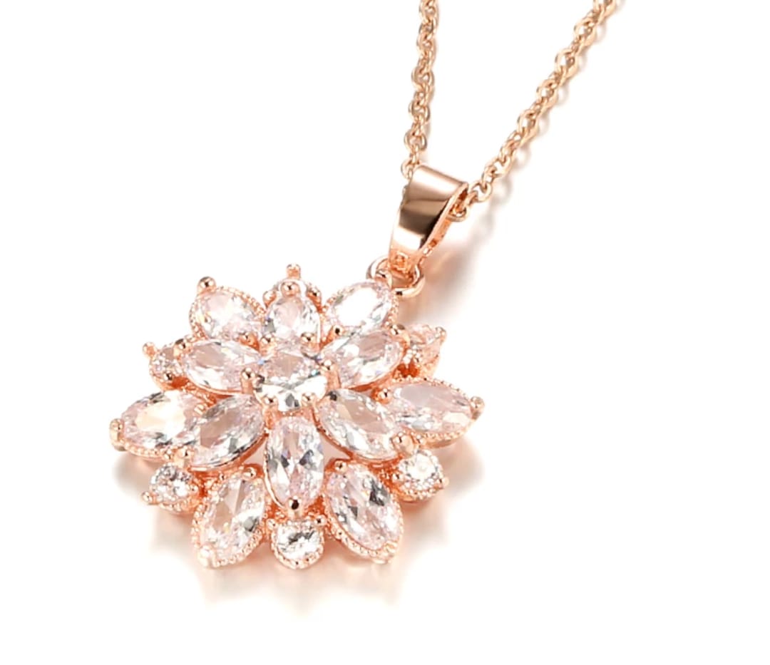 Collar de lujo de oro rosa, con colgante de flor de circón Natural para mujer.