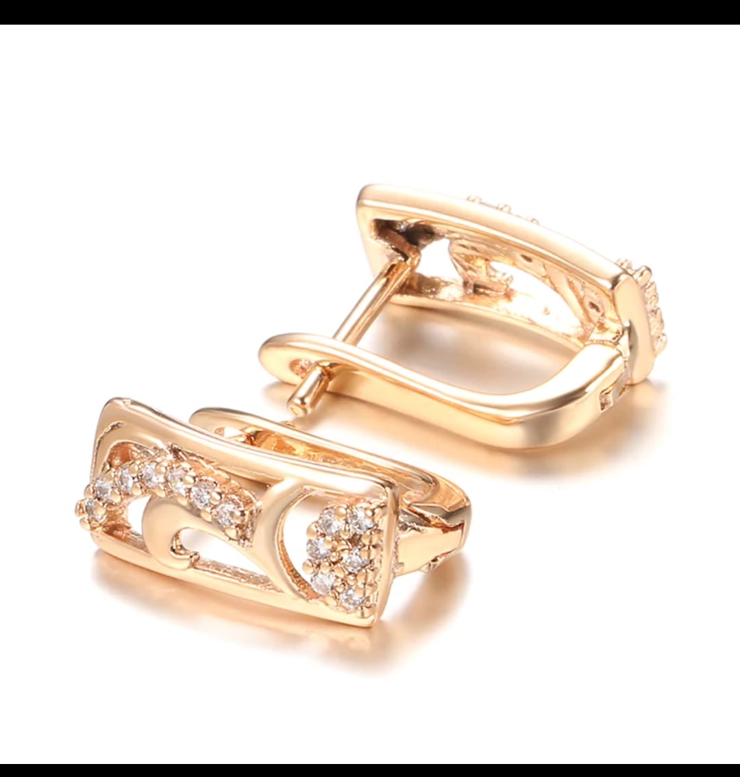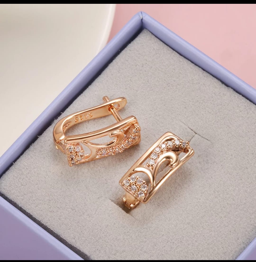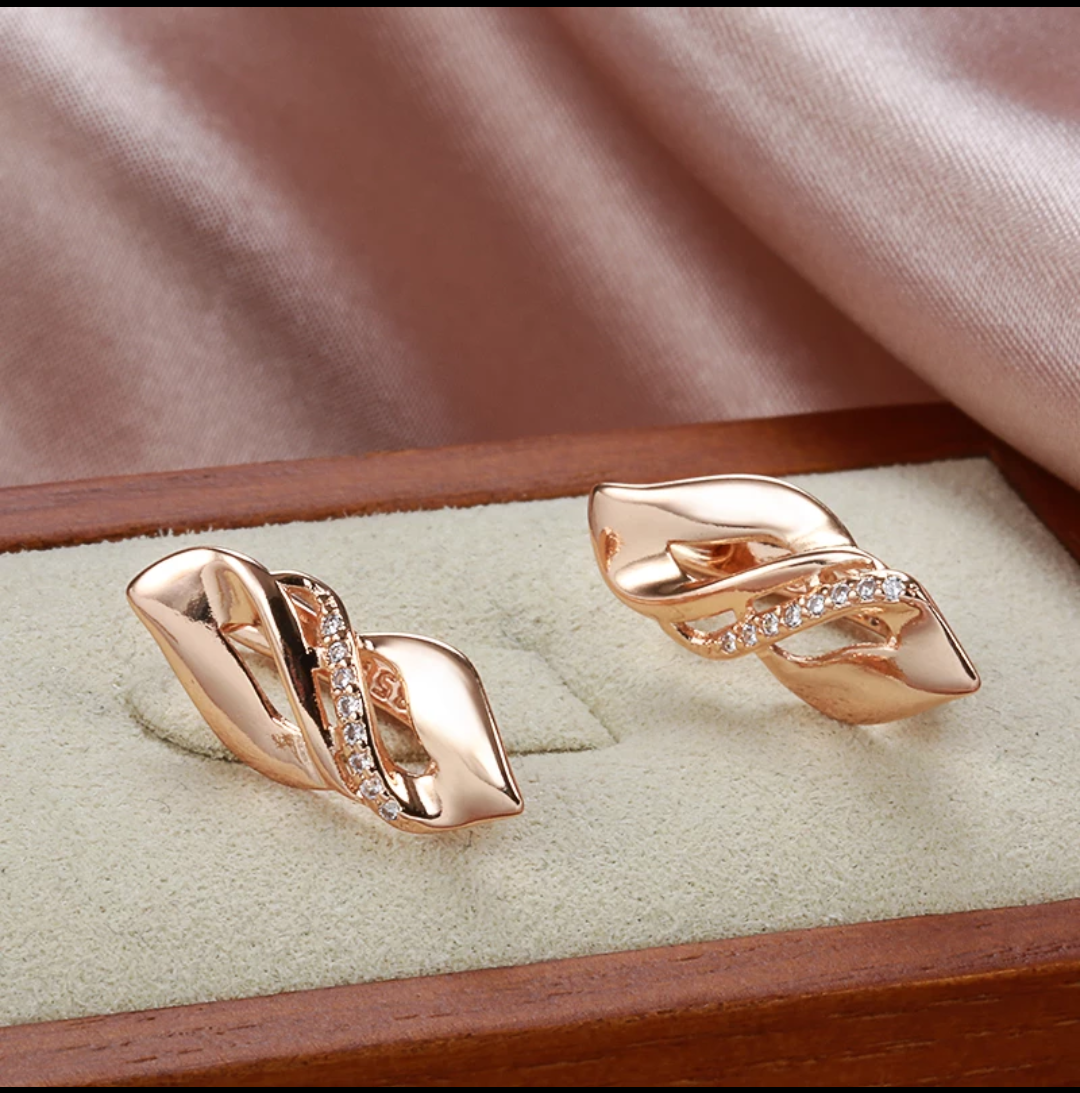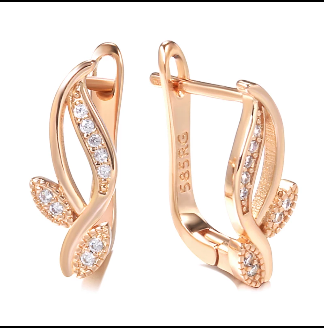 Pendientes de oro rosa 585 (grabado en su interior) para mujer, con circón natural de lujo.Joyería fina y elegante.