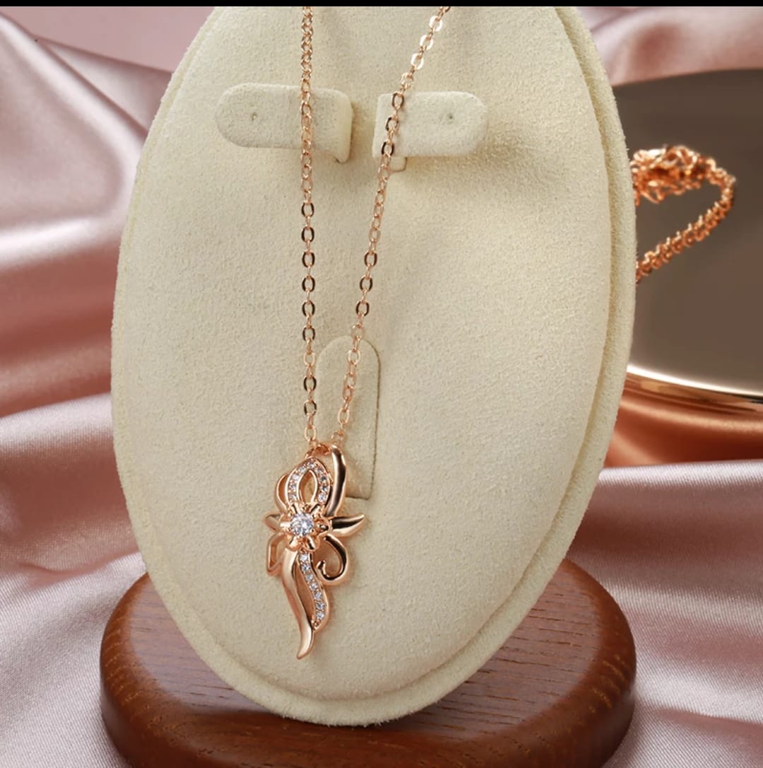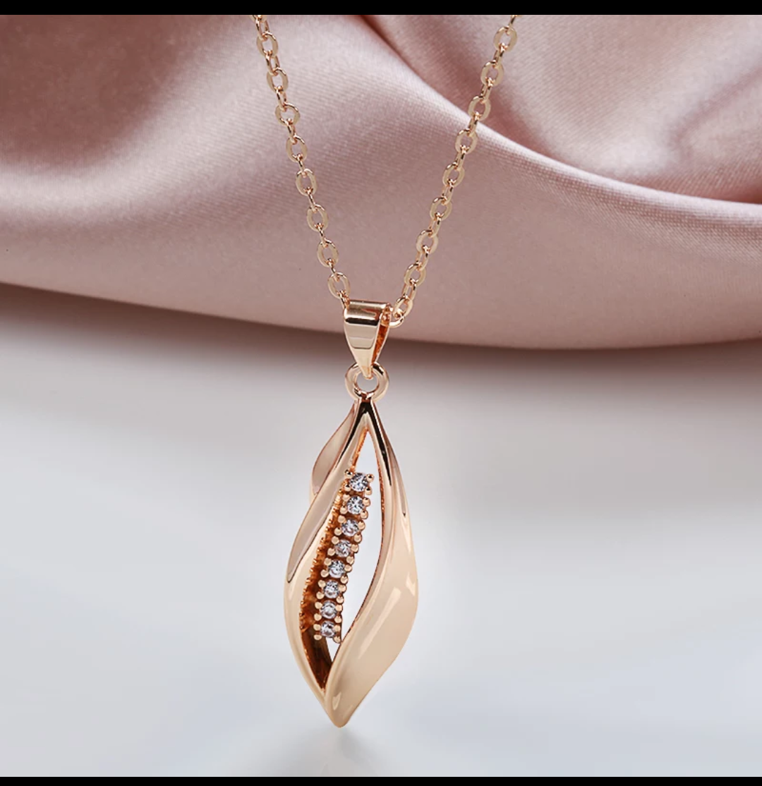 collar de oro rosa 585 para mujer, con hermosas flores huecas, collar de boda de circón Natural, joyería de moda 2022.