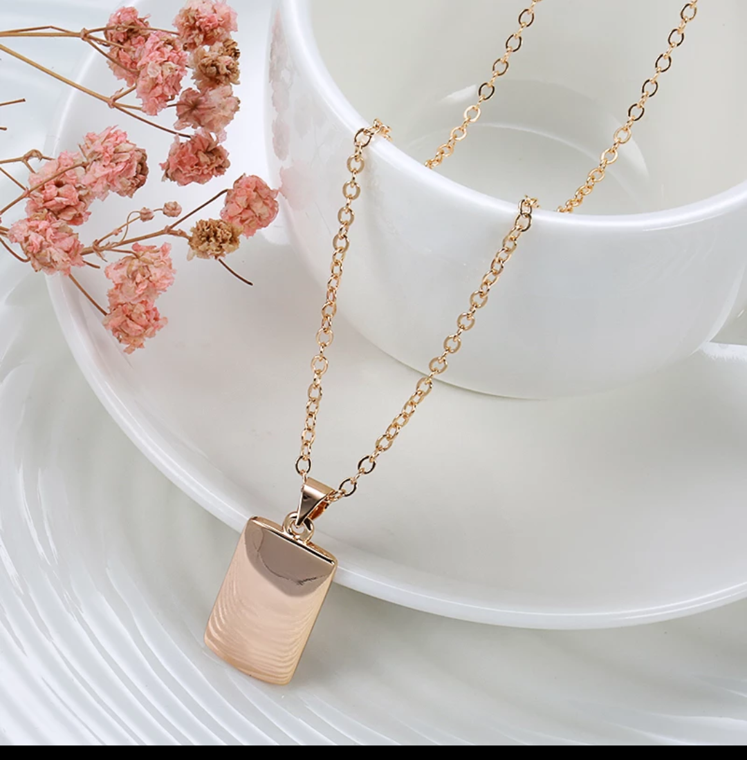 Collar colgante de oro rosa 585 (grabado en su interior) para mujer, Gargantilla cuadrada simple. Joyería fina de alta calidad, novedad de 2022.