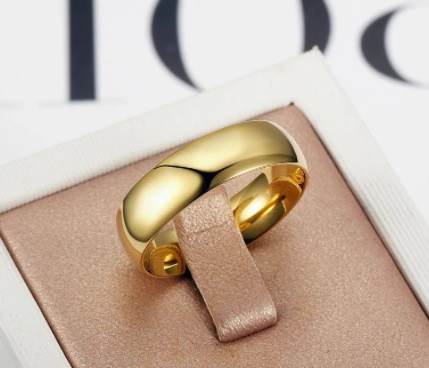 Anillo de acero inoxidable enchapado en oro de 18k para hombre y mujer, de estilo simple.joyería de alta calidad de 6 mm de anchura, para compromiso o regalo de aniversario.