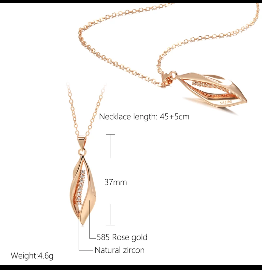 Collar colgante de oro rosa 585 (grabado en su interior) para mujer, gargantilla larga de circonia natural.Joyería romántica y elegante para mujer.