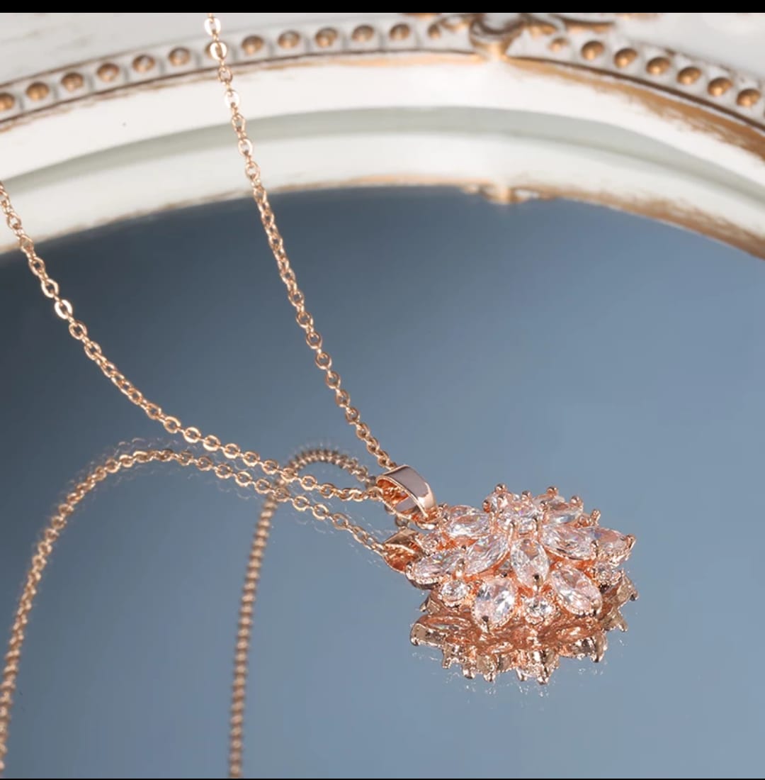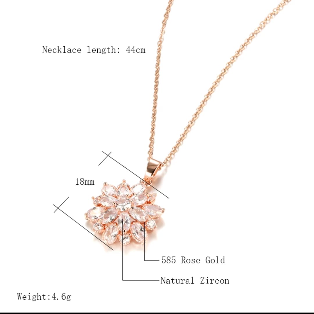 Collar de lujo de oro rosa, con colgante de flor de circón Natural para mujer.