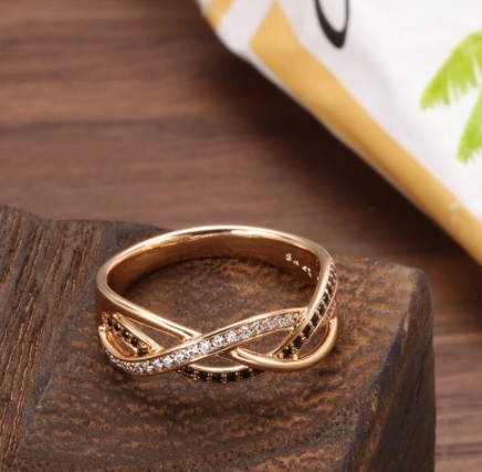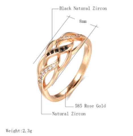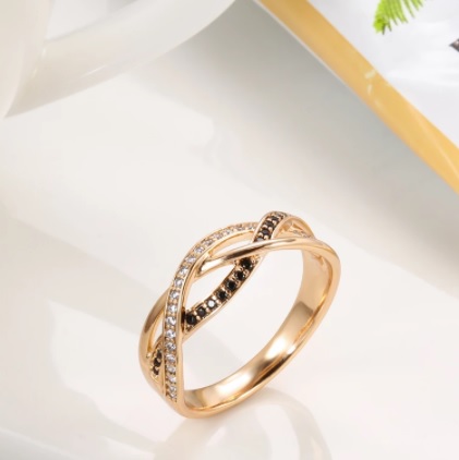 Anillo Boho (bandas cruzadas entre si) para mujer de oro rosa 585 y plata de primera ley, con circón negro y natural con flores huecas.joyería fina , vintage. Piedra principal: circón Natural negro Otra piedra: circon Natural Material: oro rosa 585 y plata 925