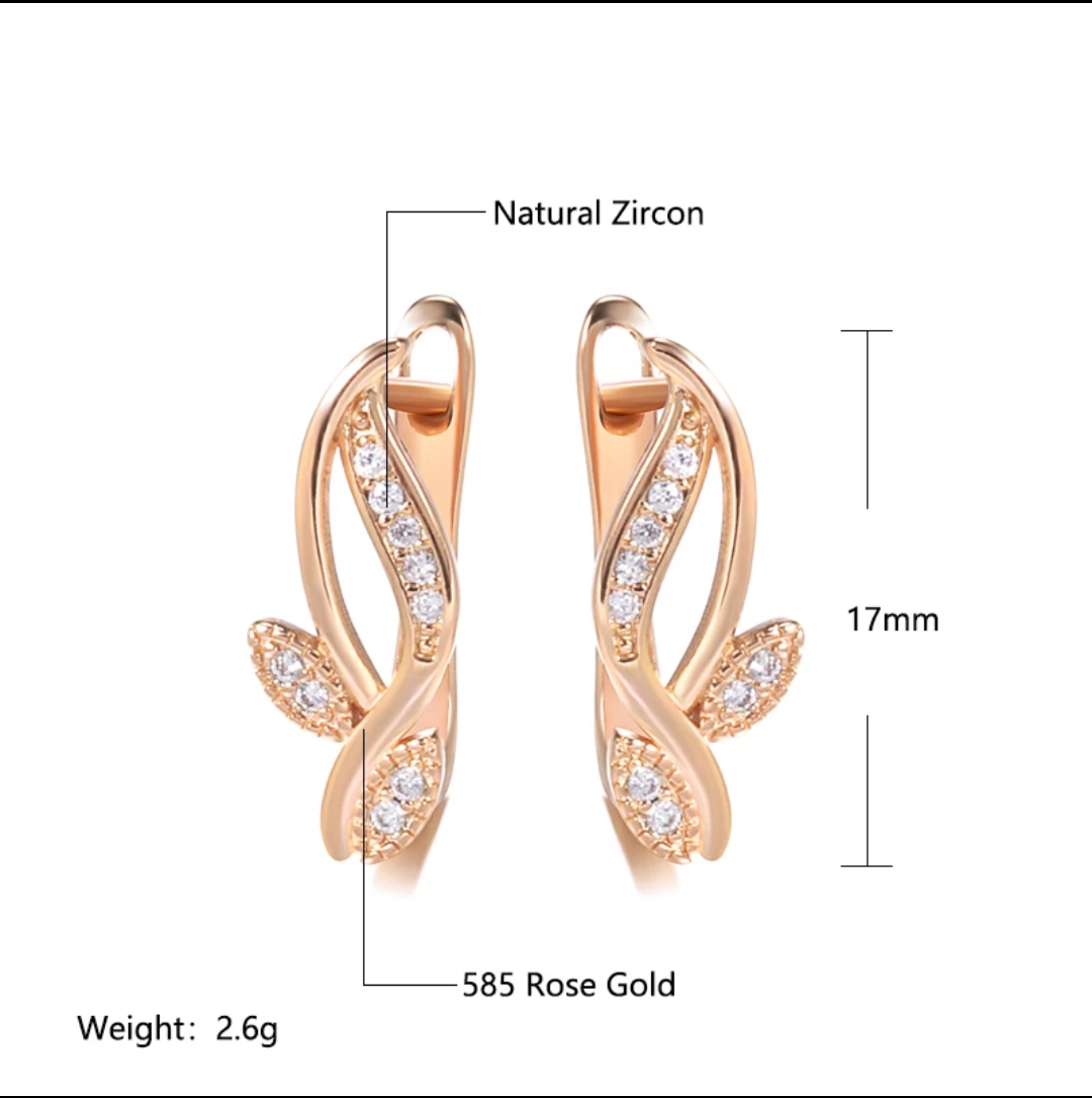 Pendientes de oro rosa 585 (grabado en su interior) para mujer, con circón natural de lujo.Joyería fina y elegante.